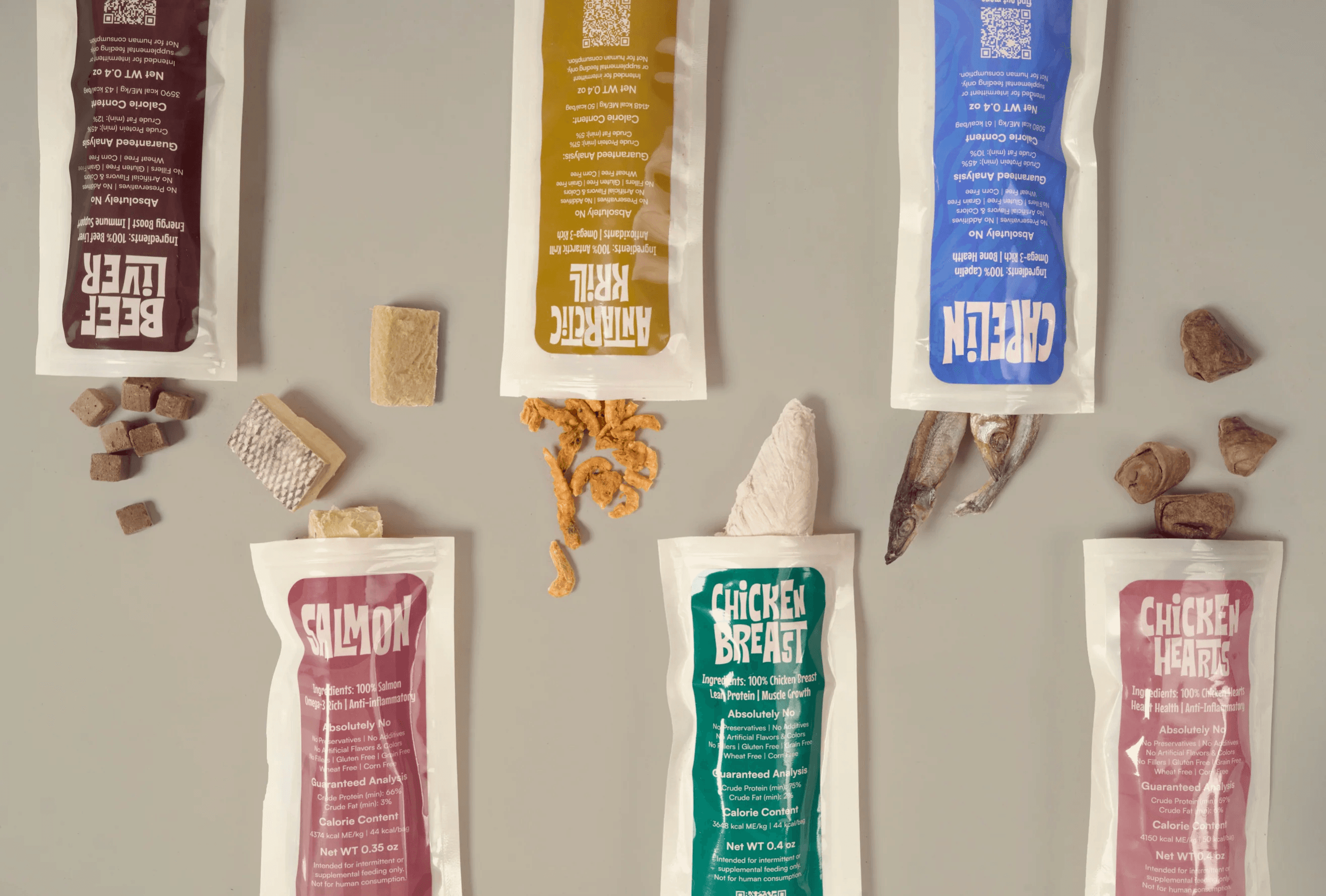 Max & Bella is a pet food packaging project developed for a U.S.-based brand focused on high-quality, natural nutrition for pets. The main goal of the project was to create a clear, honest, and functional packaging system that communicates each product’s core ingredient at a glance, while maintaining a cohesive and premium visual identity across the full range. The design is built around transparent single-serve pouches, allowing the real product to remain visible and reinforcing a sense of trust and natural quality. A structured color-coding system helps differentiate flavors, while straightforward typography and a clean hierarchy ensure high legibility and everyday usability. The result is a modular, recognizable, and scalable packaging system, designed to work effectively in both e-commerce and retail environments, and aligned with the brand’s values of quality, simplicity, and animal wellbeing.